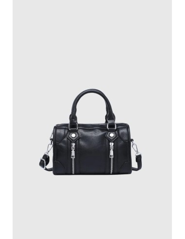 Cierre de cremallera superior. Bolsillo interior. Bolsillo exterior con cremallera. Doble asa de mano. Asa larga ajustable y extraíble. Cremalleras decorativas.