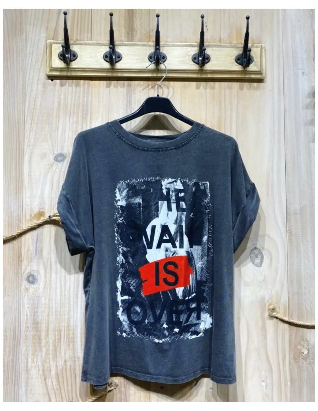 • Camiseta amplia de manga corta con dobladillo y cuello redondo.