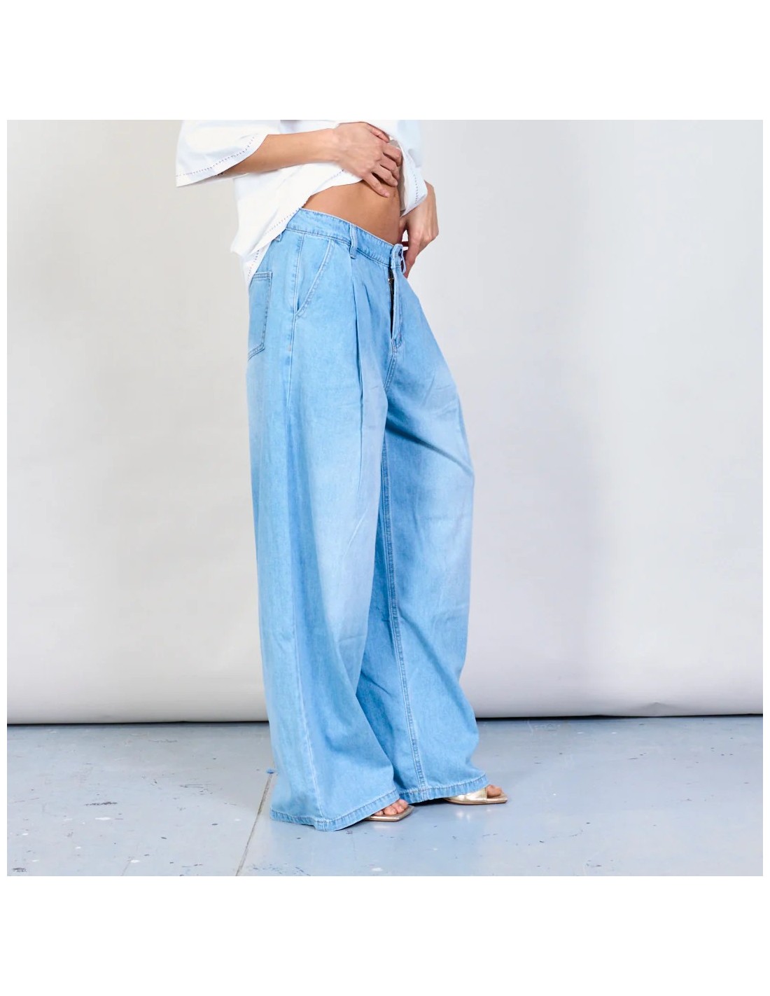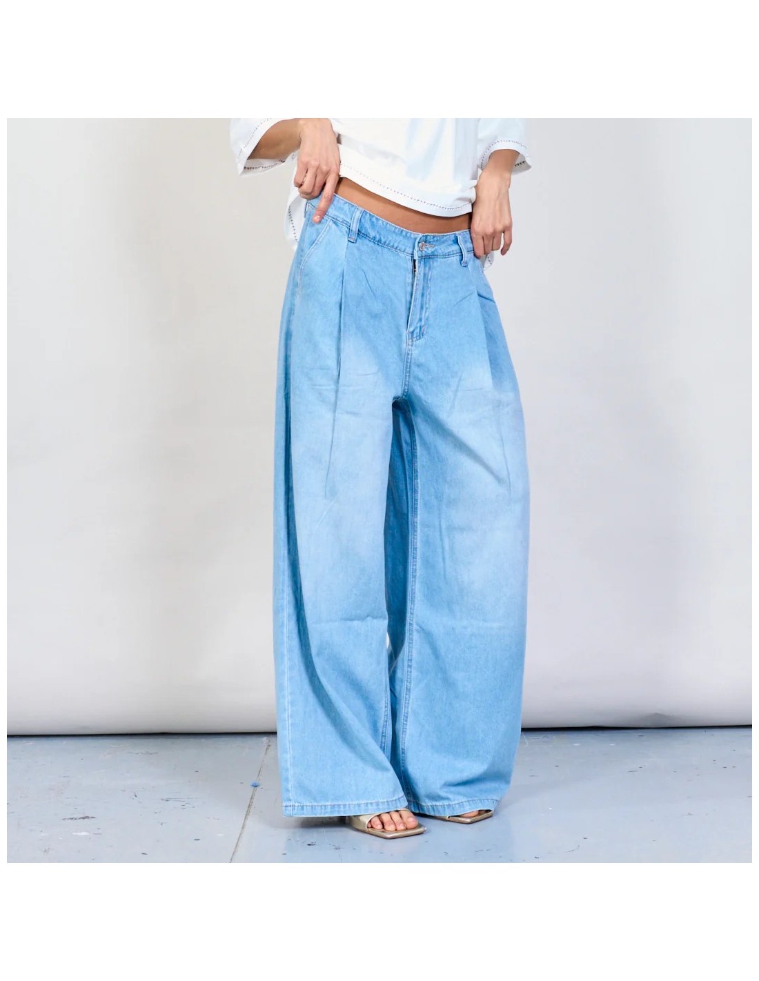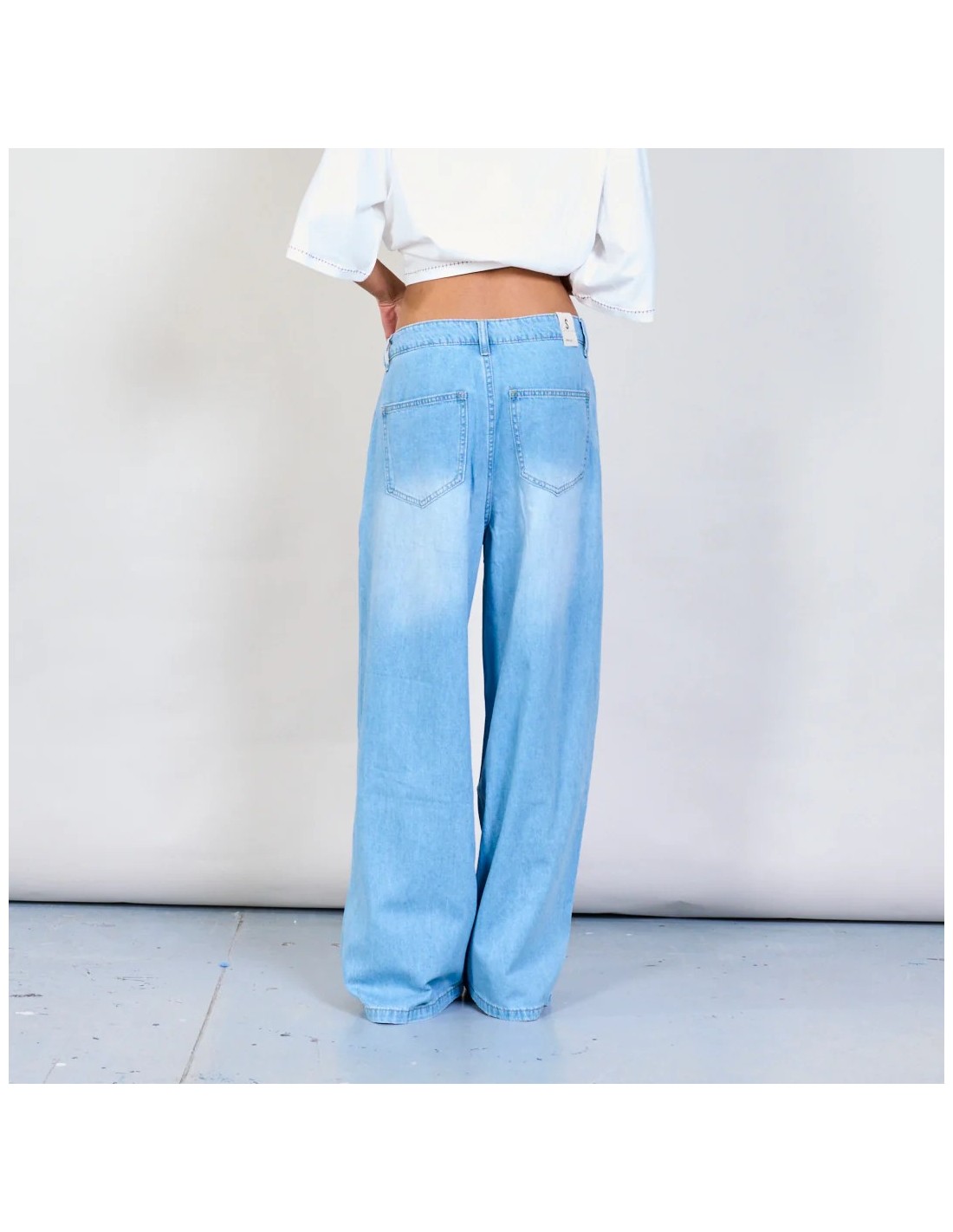 - Pantalón vaquero Azul clarito con ajuste relajado y diseño de pierna cónica.