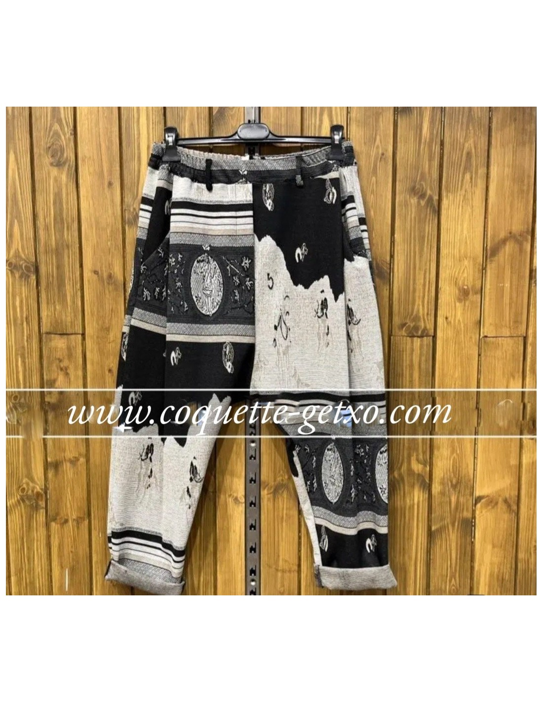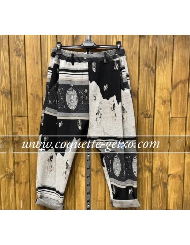 - Pantalón de línea baggy con estampado del oeste en tonos negros y grises.