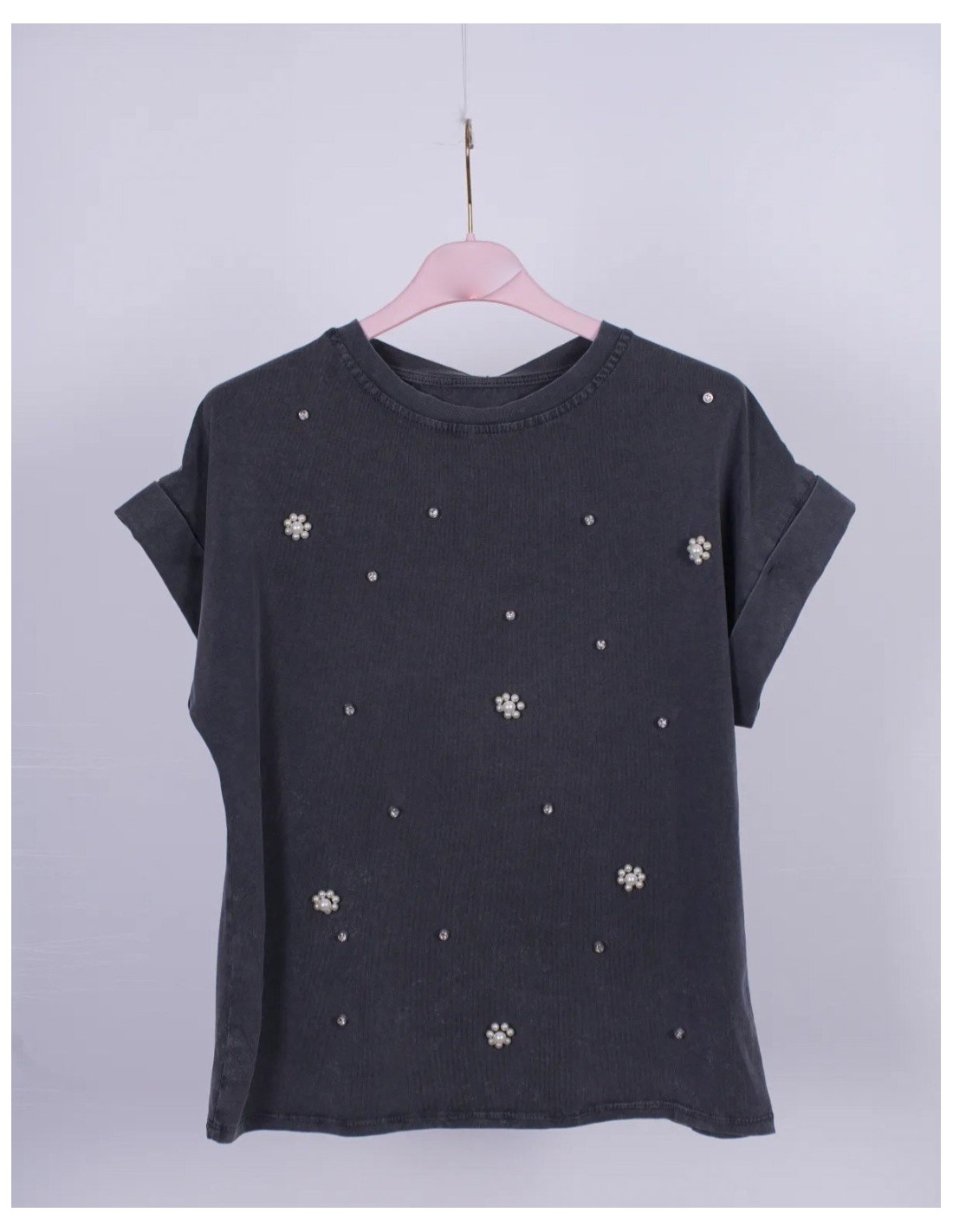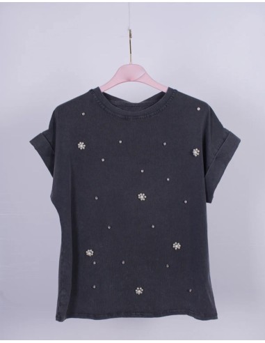- Color Gris desgastado con perlas adheridas por la parte delantera, dándole un toque muy CHIC.