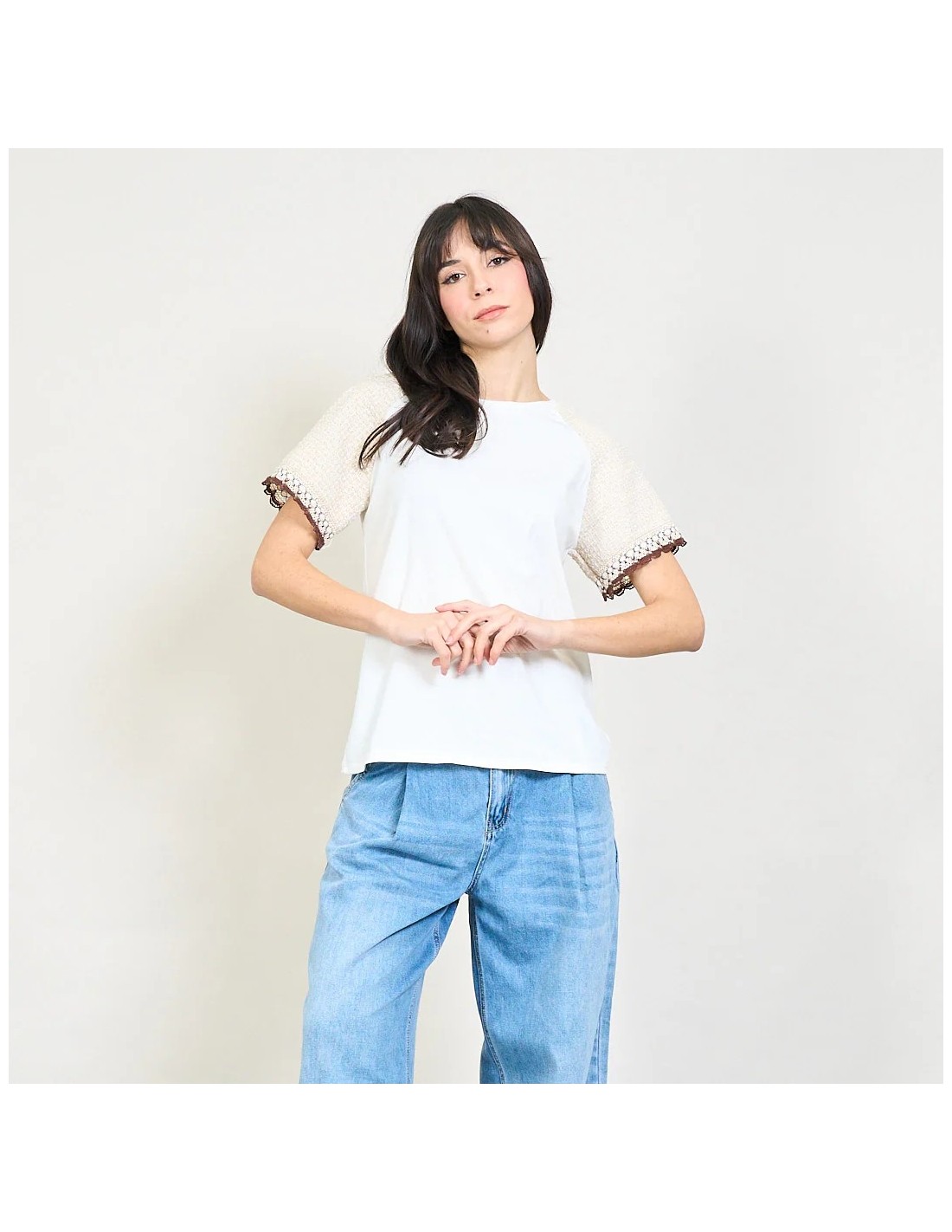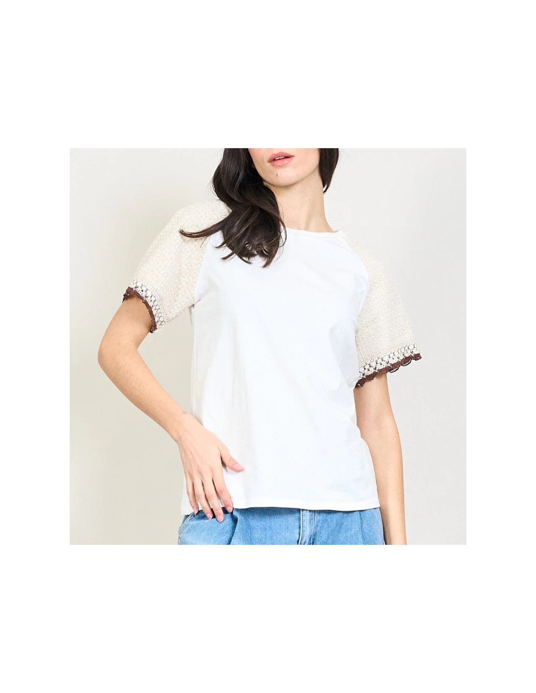 Camiseta Mangas Crochet