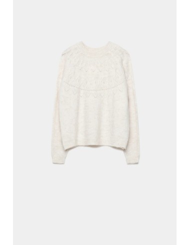 Tejido de punto. Cuello redondo. Manga larga. Diseño calados.