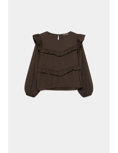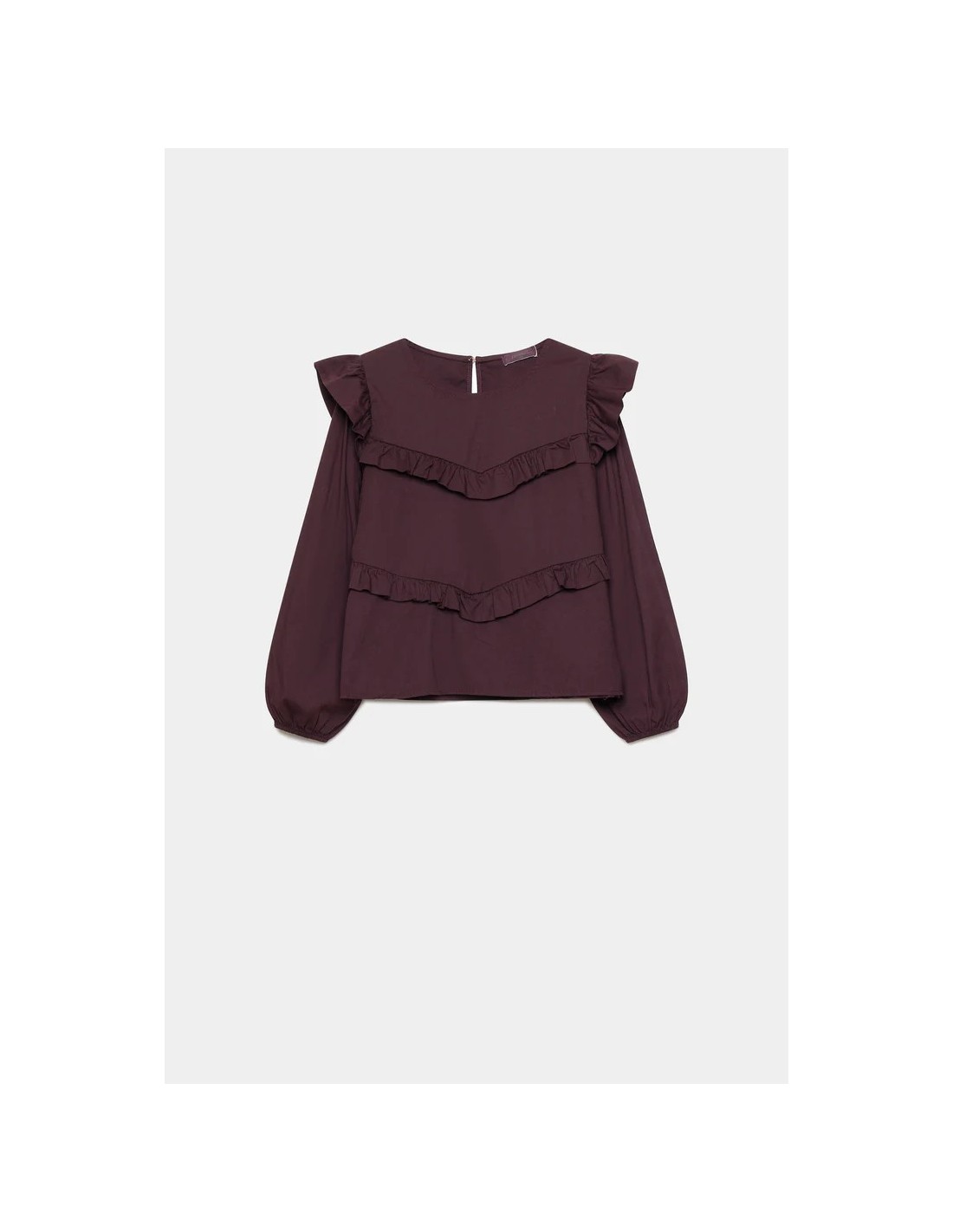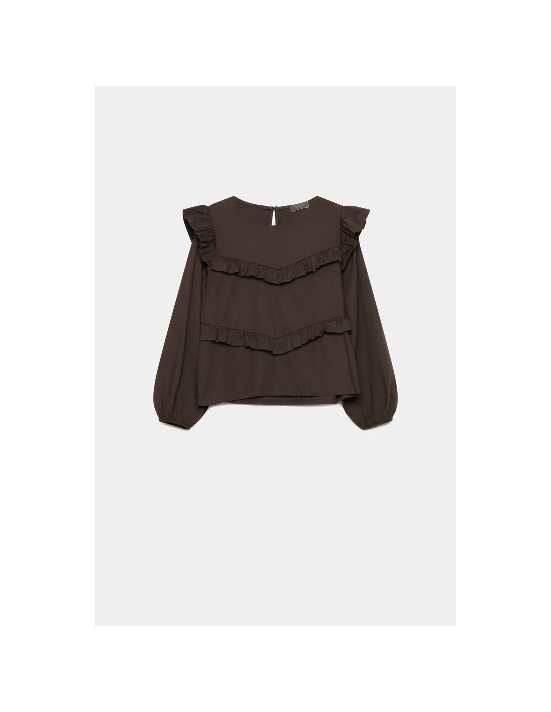 • Cuello redondo. Manga larga. Detalle de volantes.