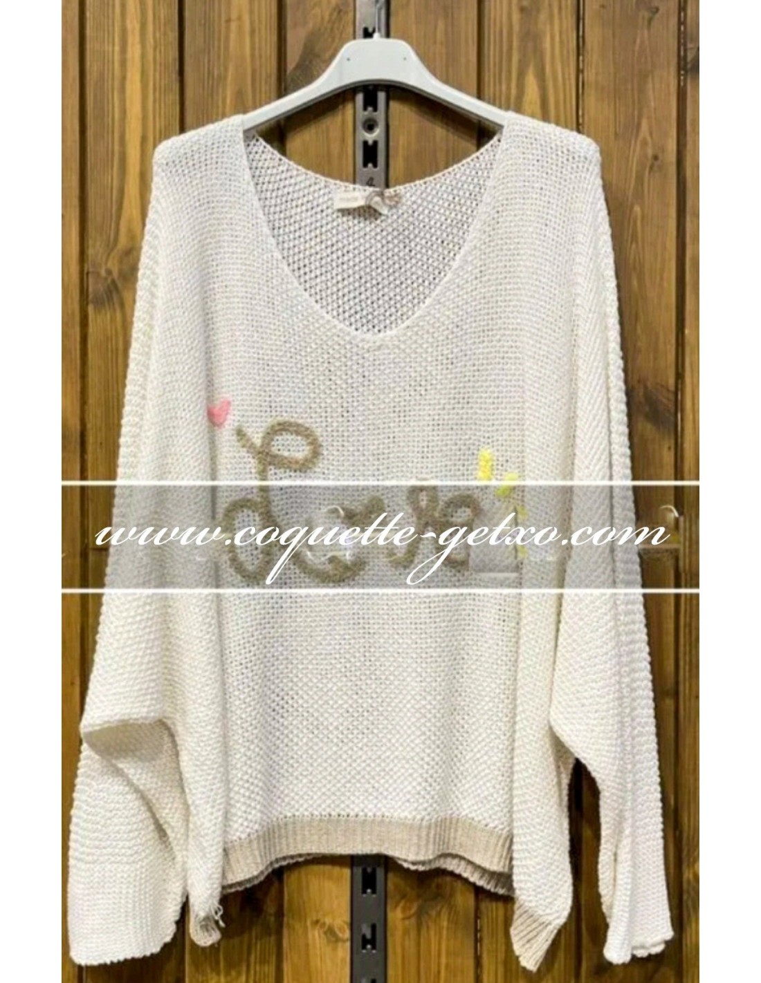 • En el pecho lleva bordada la palabra LOVE en Beige y cenefa del mismo color en la parte inferior.