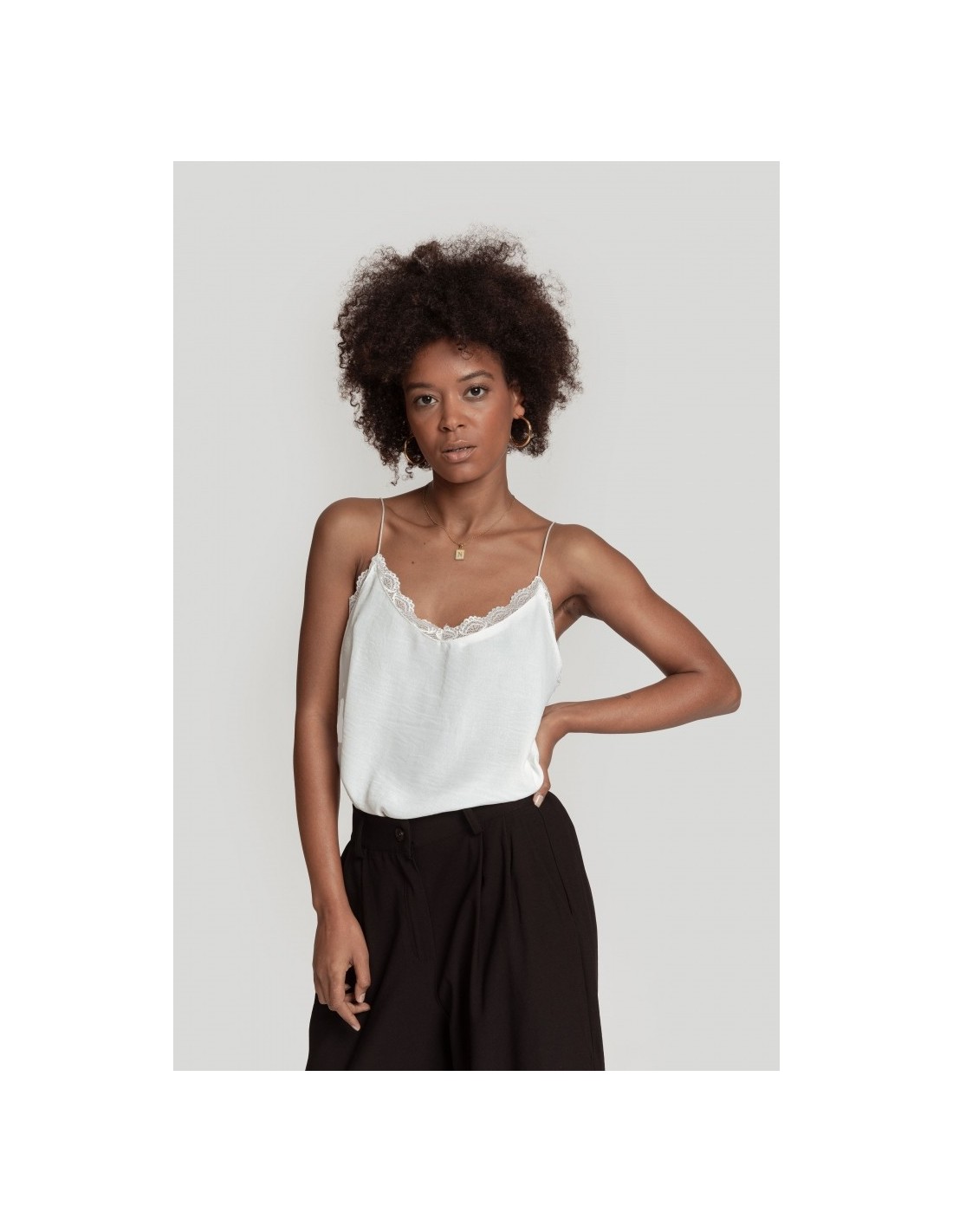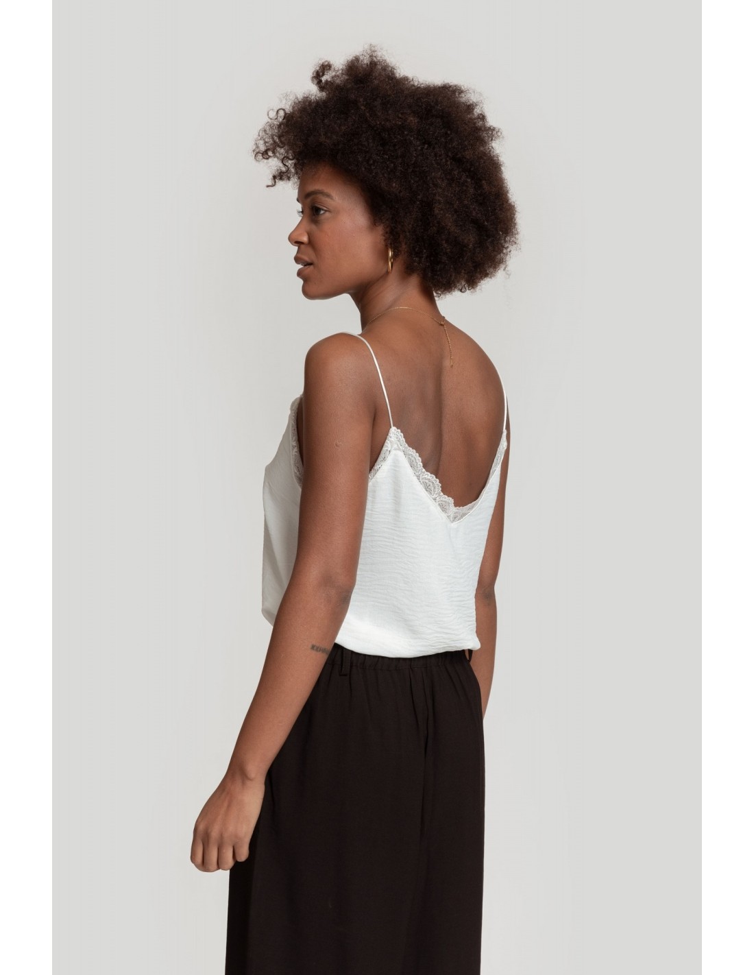 • Diseño fluido. Cuello amplio. Tirantes finos. Detalles encaje.