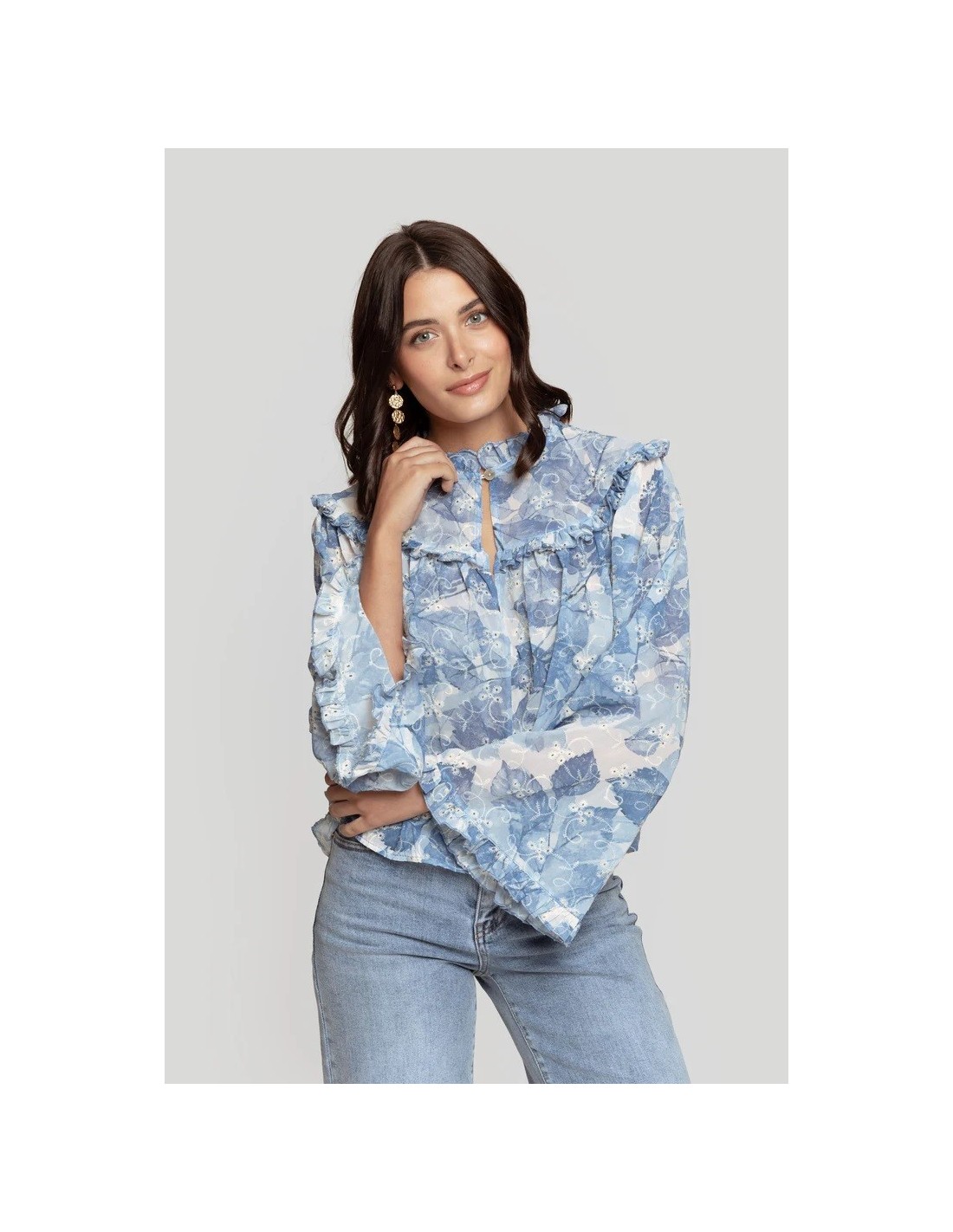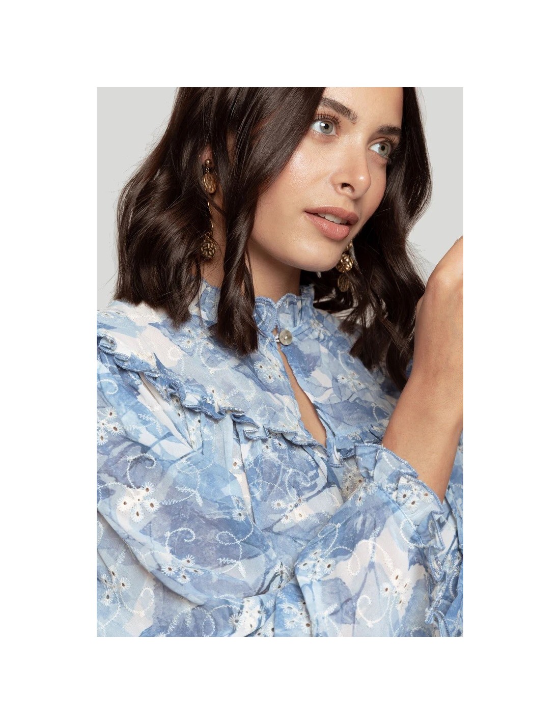 Blusa con tejido de gasa azul.