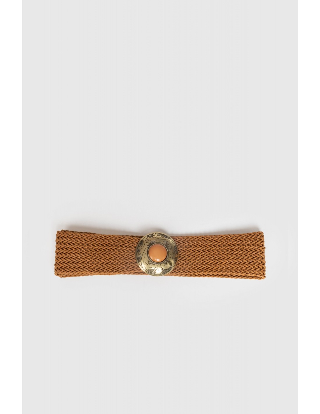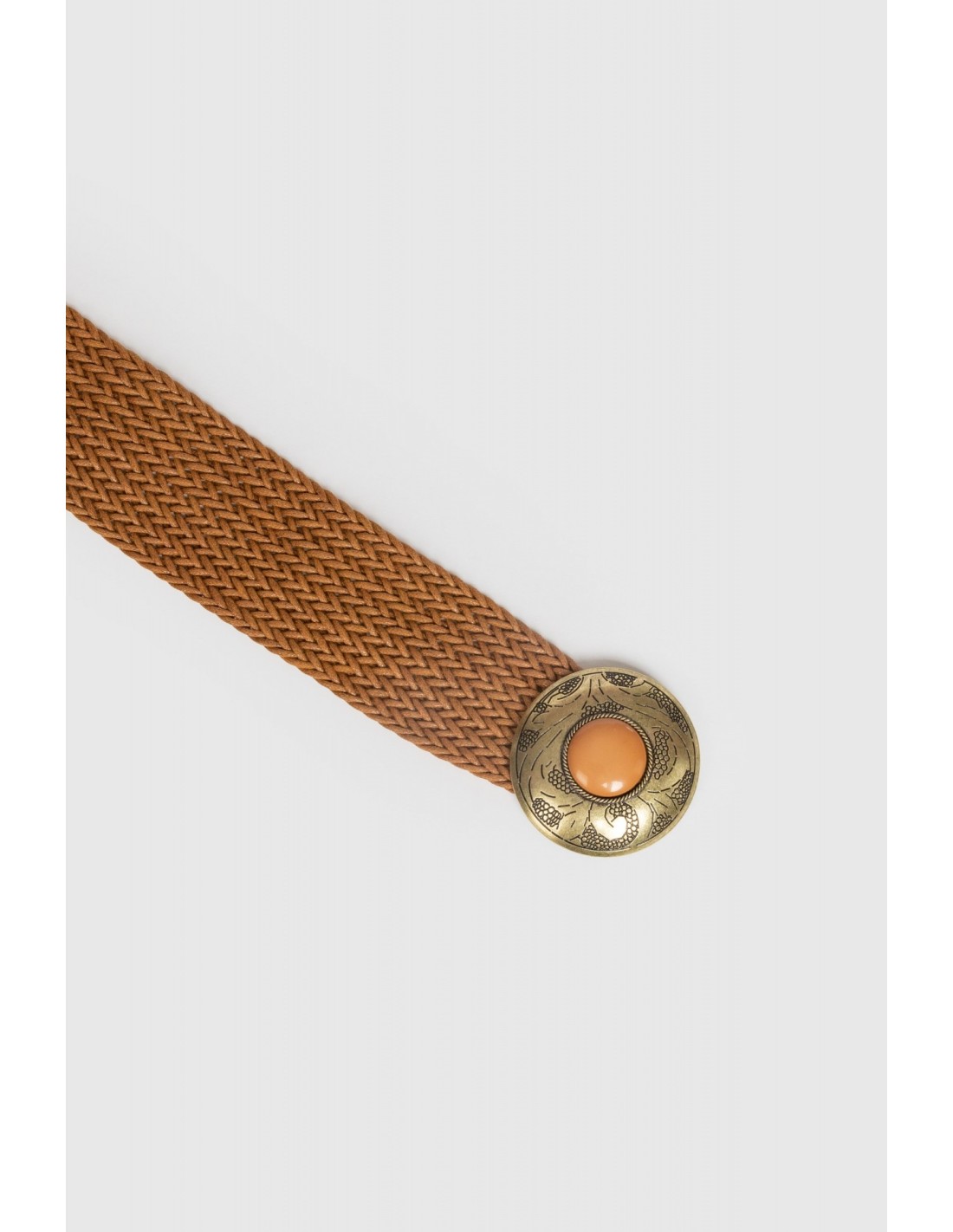• Hebilla redonda grabada. Piedra en hebilla. Cierre de gancho ajustable.