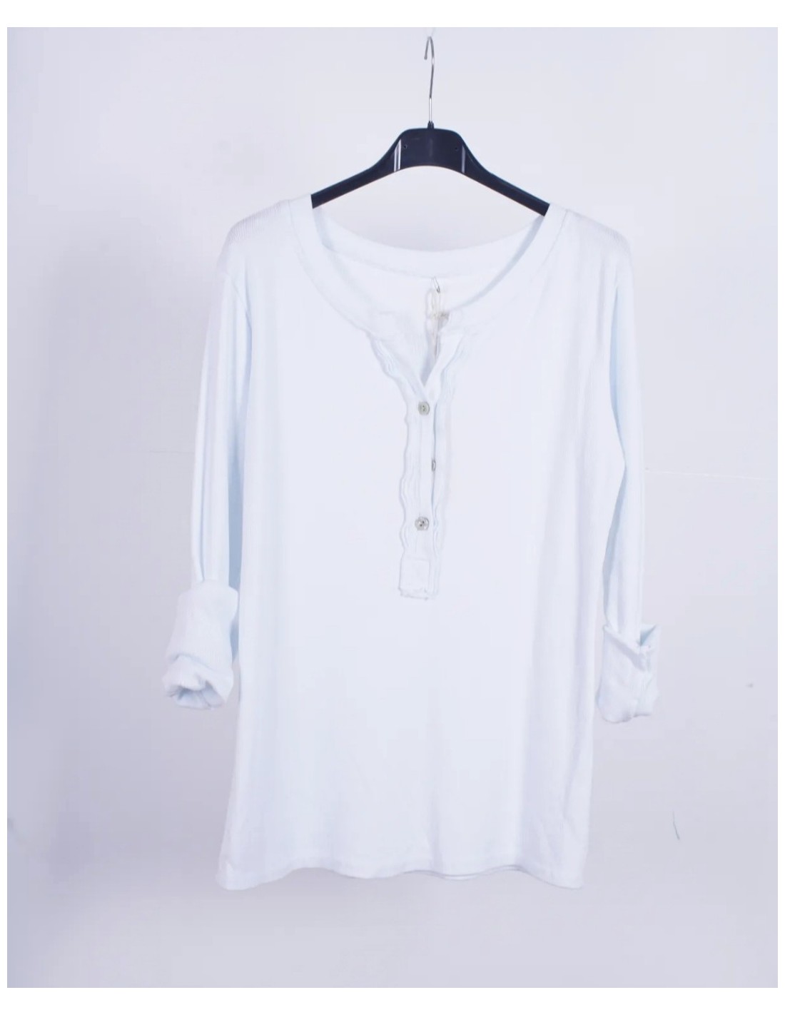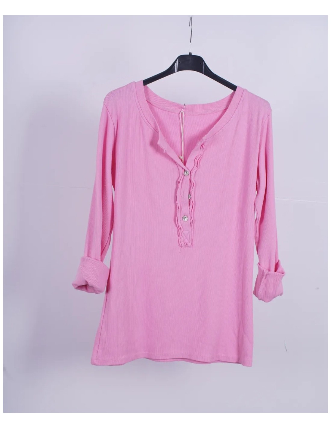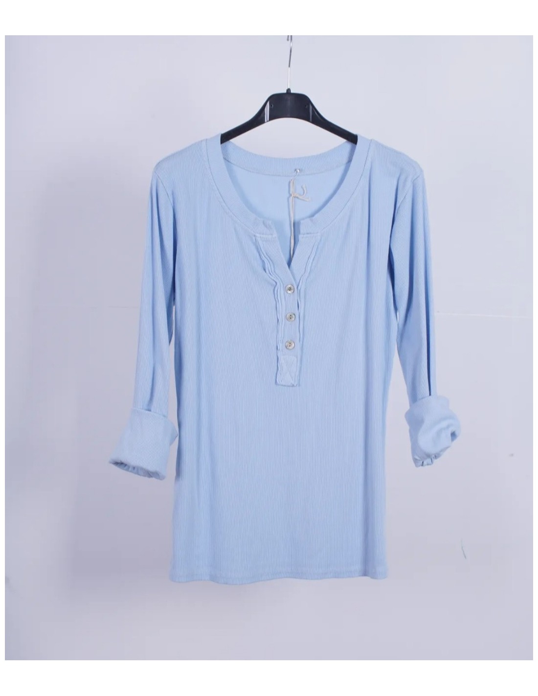 - Camiseta básica de canalé con manga larga y escote con botones.