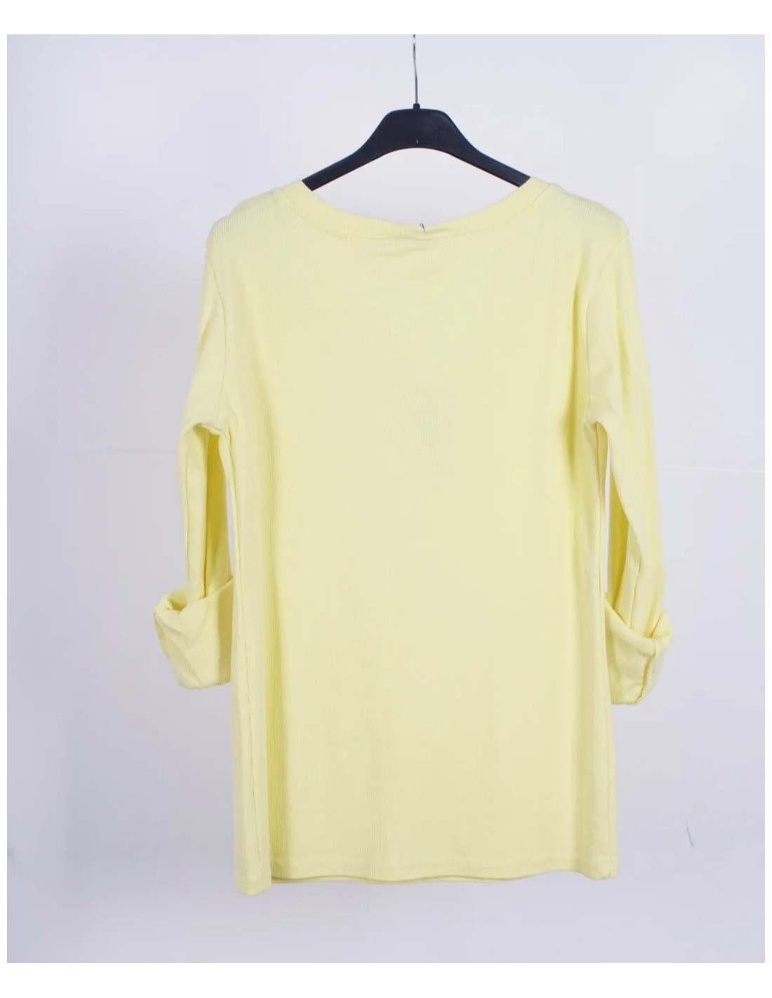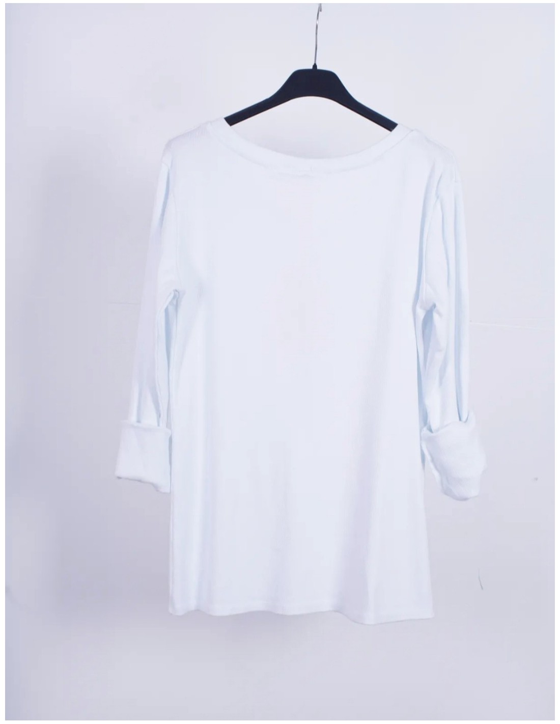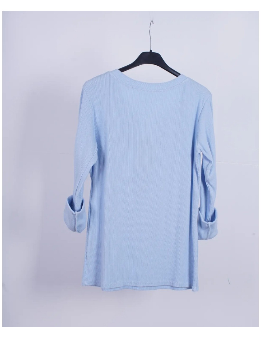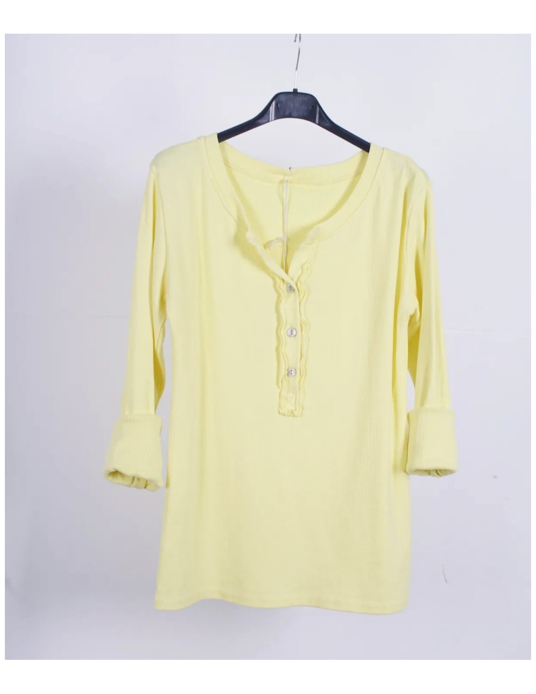 - Camiseta básica de canalé con manga larga y escote con botones.