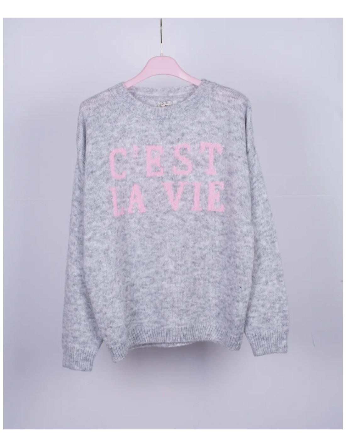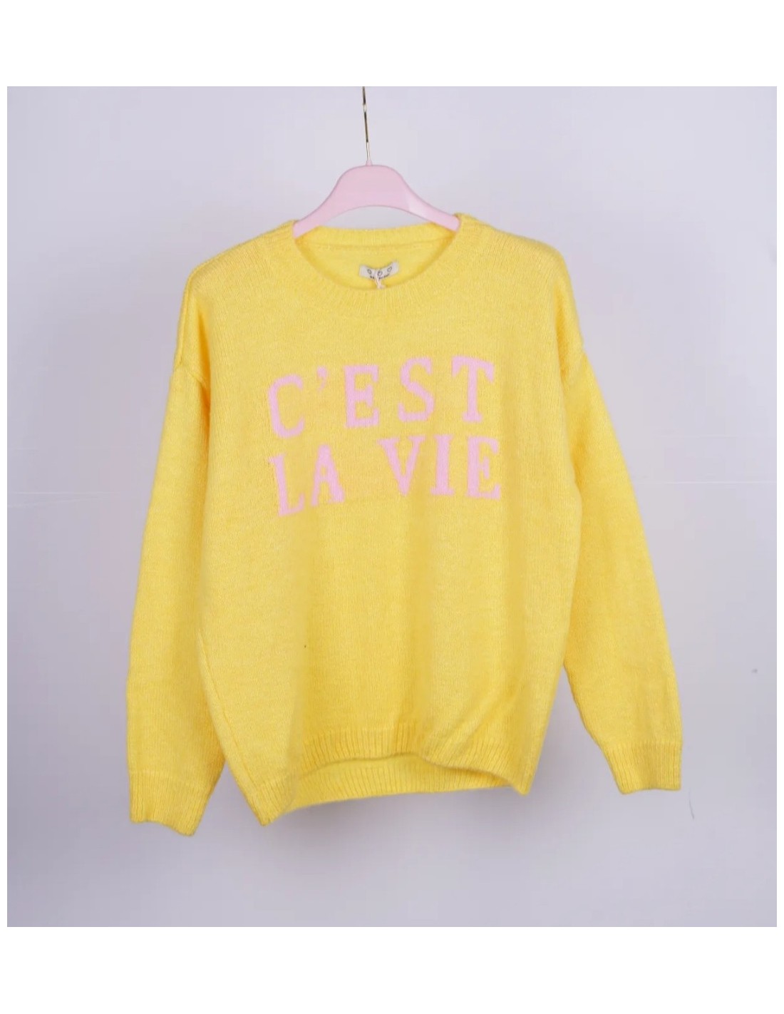 • Color liso en Amarillo, Blanco y Gris con la frase CÉST LA VIE en la parte frontal en Rosa.