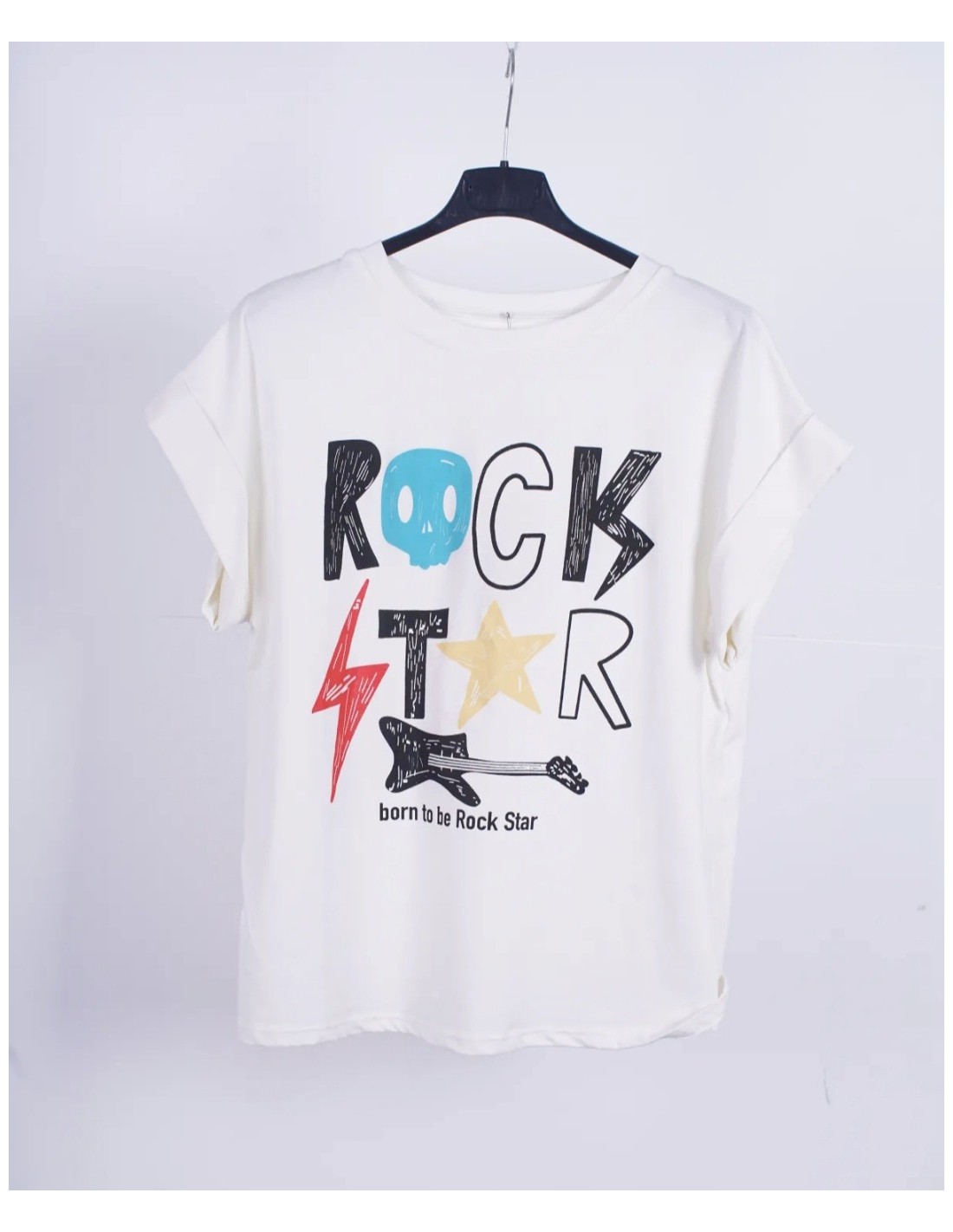- Rock Star, una calavera y una guitarra eléctrica caracterizan a esta camiseta.