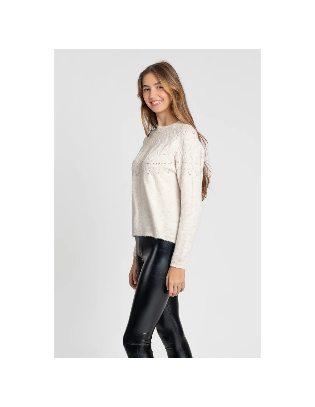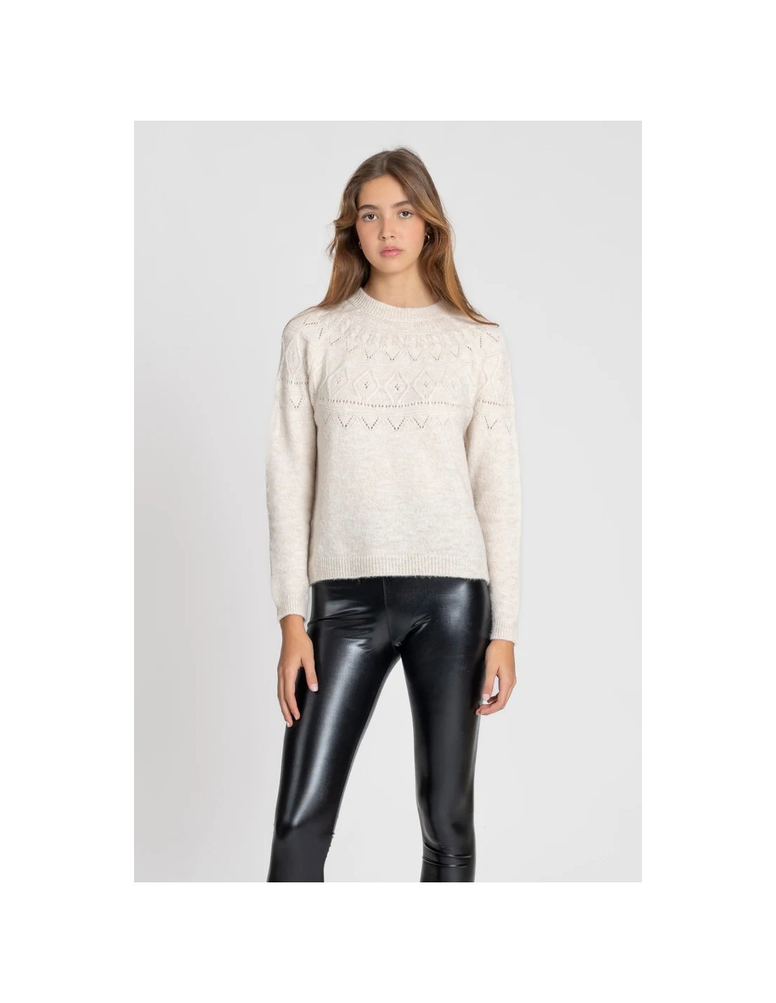 Tejido de punto. Cuello redondo. Manga larga. Diseño calados.